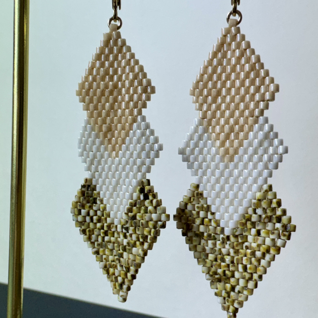 Boucles d’oreilles losange – Beige, blanc & doré
