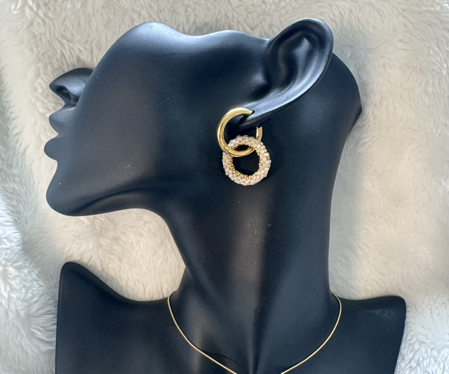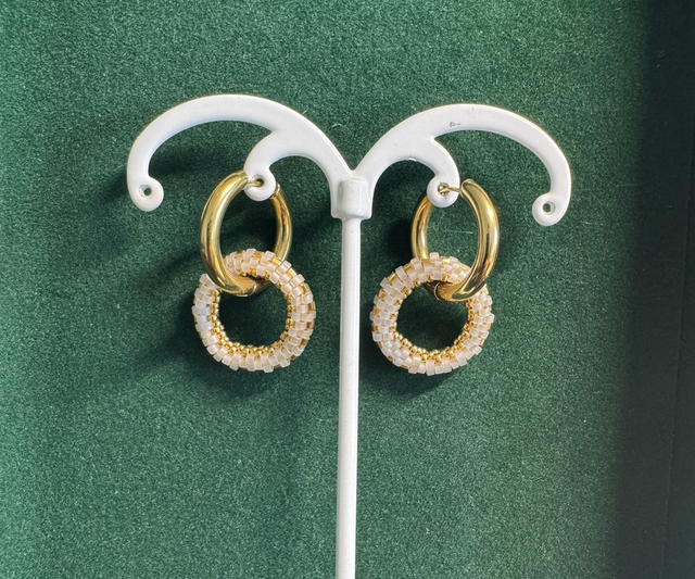 Créoles Anneau de Perles Tissées - Blanc et Or - Acier Inoxydable