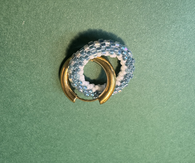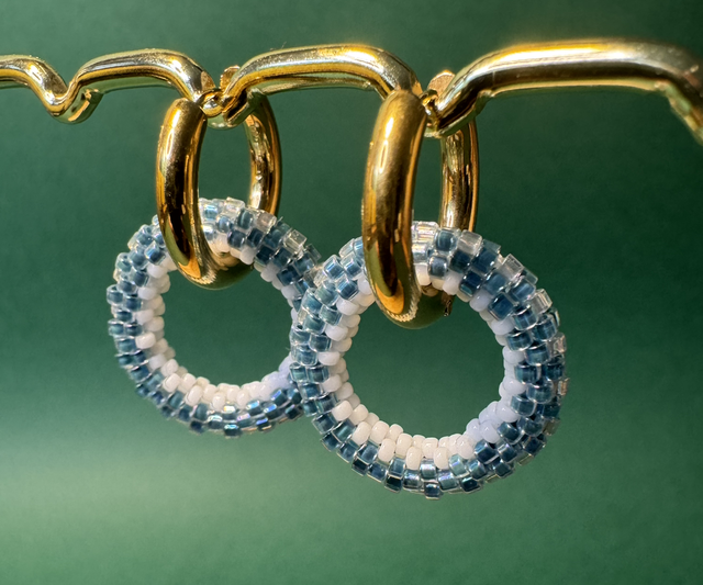 Créoles Anneau de Perles Tissées - Bleue ciel et Blanc- Acier Inoxydable