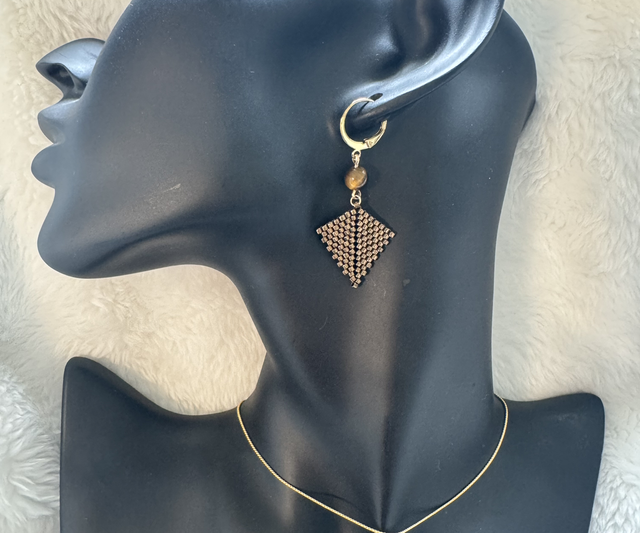 Créoles Anneau de Perles Tissées - Mocca et Blanc - Acier Inoxydable
