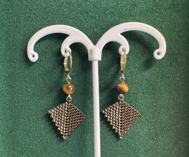 Créoles Anneau de Perles Tissées - Gunmetal et Or - Acier Inoxydable