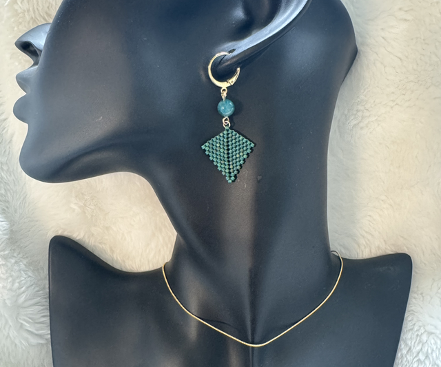 Boucles d’oreilles ethniques – Vert, noir, blanc & doré