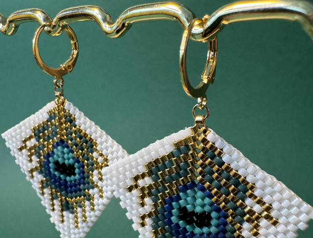 Boucles tissées Goldfilled 14k « Paon »