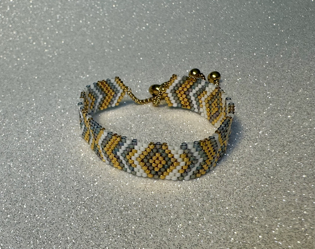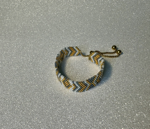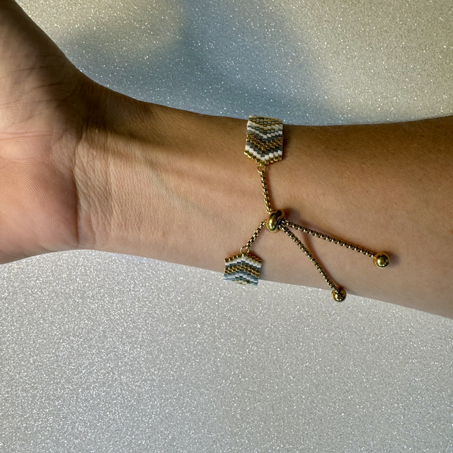 Bracelet Tissé - bleu/gris blanc et or - Fermoir coulissant en acier inoxydable doré