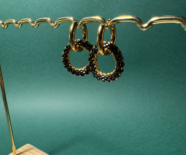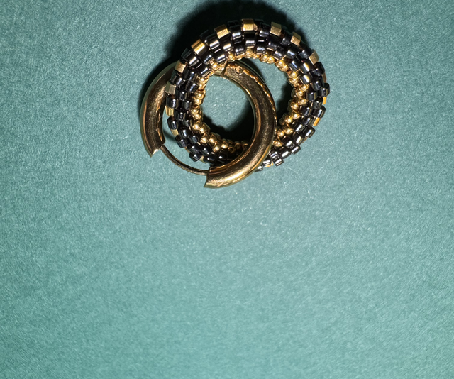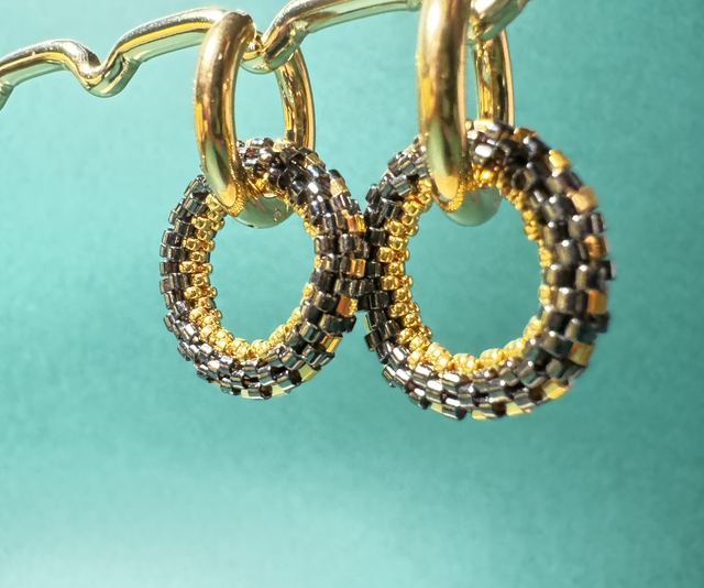 Créoles Anneau de Perles Tissées - Gunmetal et Or - Acier Inoxydable
