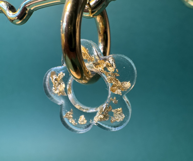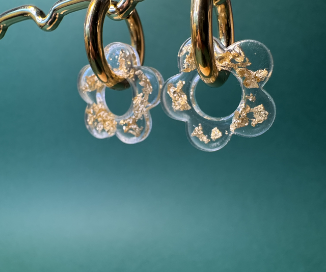 Créoles petites fleurs résine feuille d’or acier inoxydable
