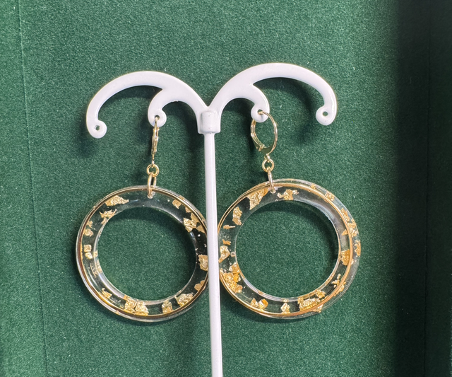 Créoles Résine Feuilles d’or - Goldfilled 14k